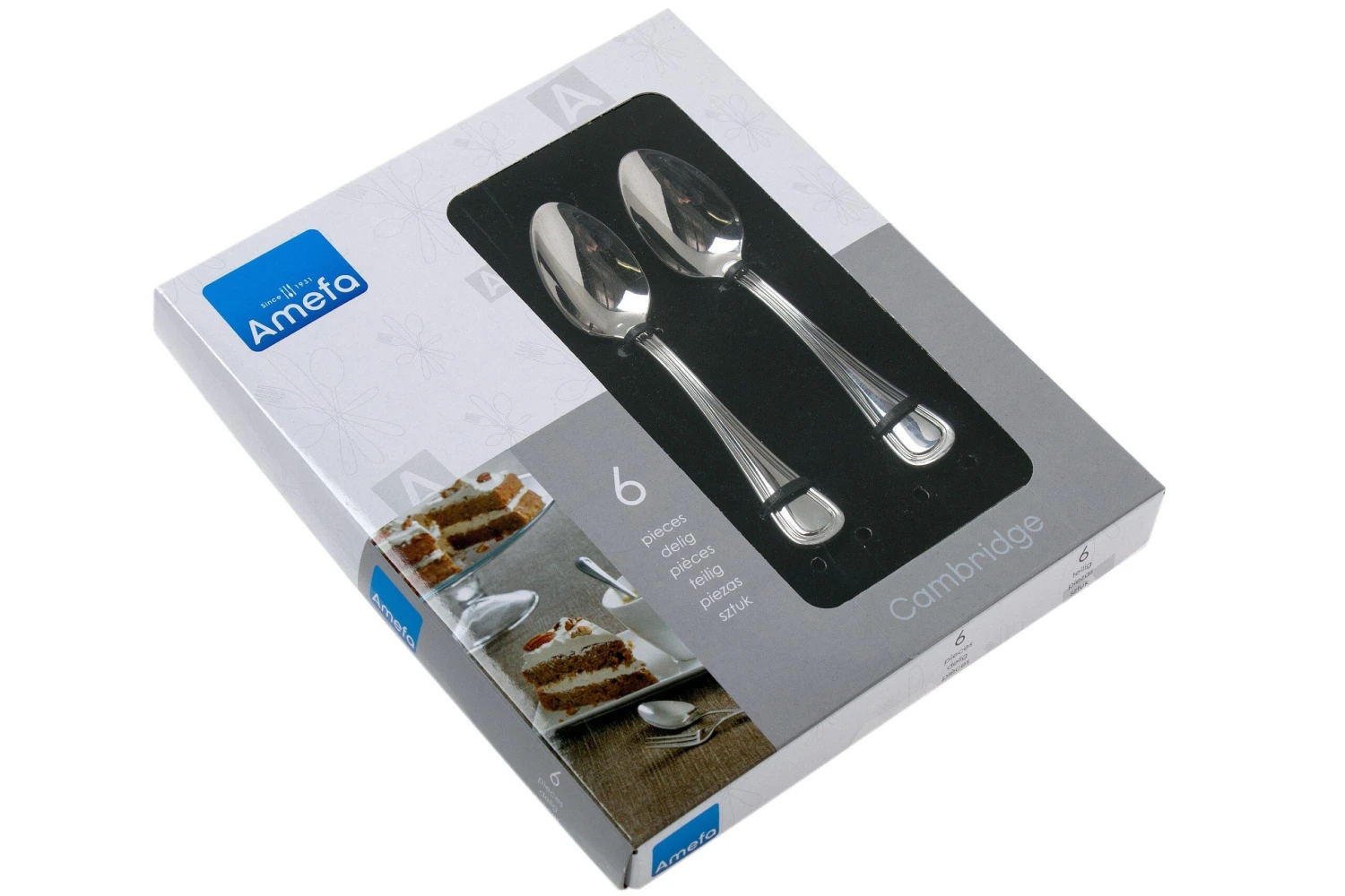 La ménagère Amefa Cambridge est issue de la collection Premiere. Ici, la qualité se pare de designs exclusif et se marie à la fonctionnalité. Le modèle Cambridge est orné de fines décorations. Cette collection a été réalisée avec beaucoup de soin et de précision en chrome-nickel, plus connu sous le nom d’acier inoxydable 18/10. Cette collection est donc très résistante à la rouille et aux tâches. Ces modèles sont parés d’une finition très brillante, ils peuvent donc aller au lave-vaisselle.
