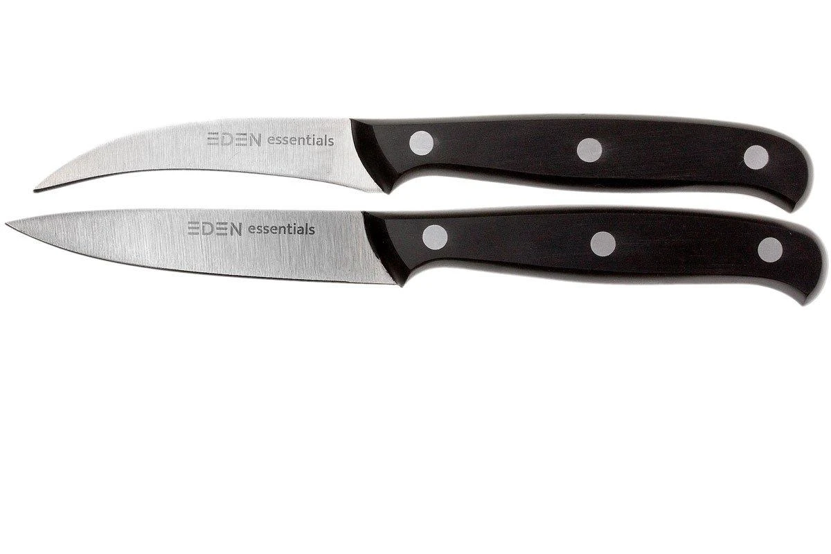 Ce jeu de 2 couteaux Eden Essentials comprend un couteau d’officer et un couteau à éplucher. Le couteau d’office Eden Essentials est un petit couteau léger pour une coupe précise. Ce couteau polyvalent peut être utilisé pour différents petits travaux de coupe. La lame est étroite et pointue avec une coupe droite. Ce couteau est donc idéal pour couper ou éplucher les fruits et légumes.