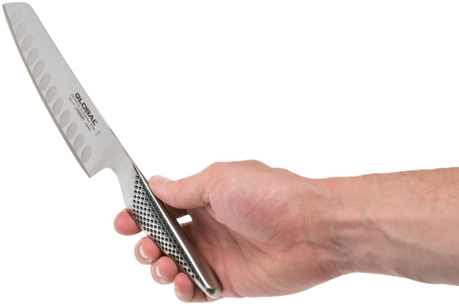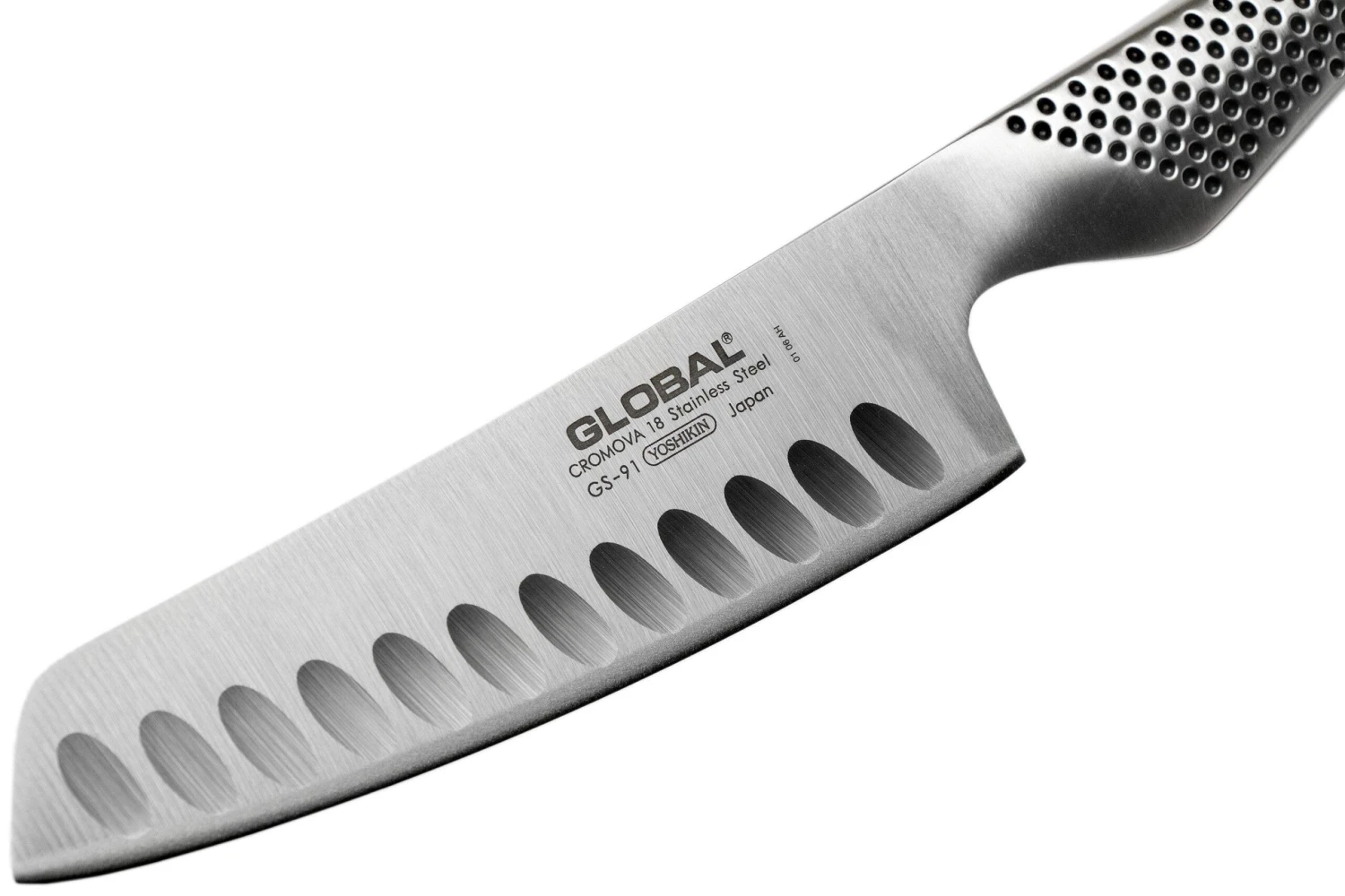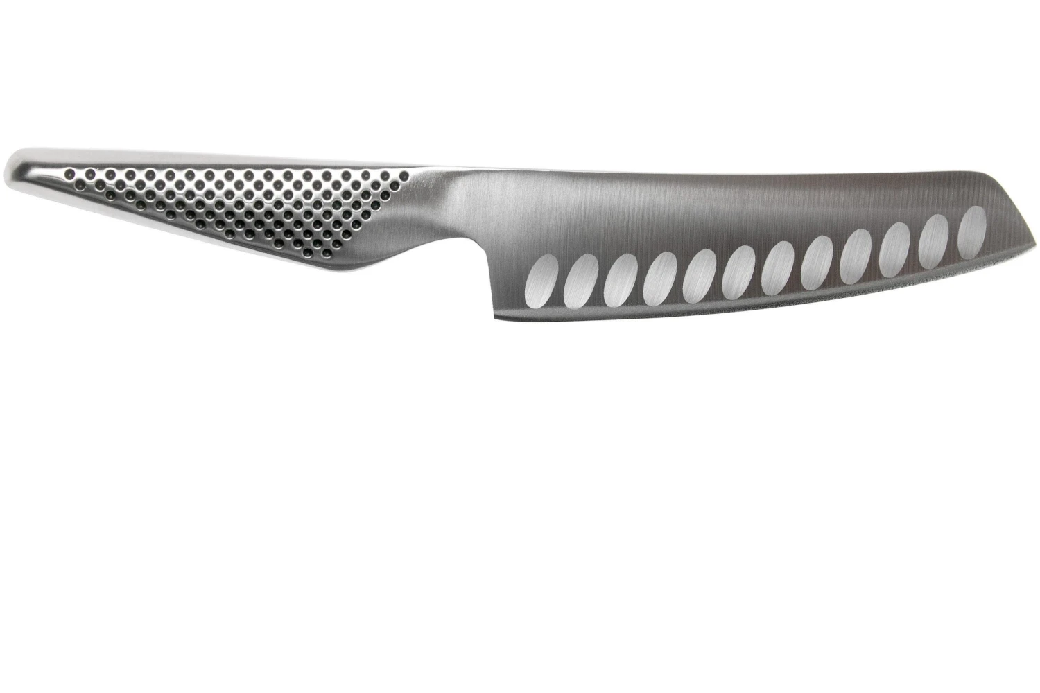 Coupez vos fruits et légumes comme un chef avec le couteau à légumes Global GS91. Les alvéoles de la lame empêchent les aliments de coller. La lame en acier Cromova 18 est livrée extrêmement tranchante. Une finition légèrement mate complète le tout.