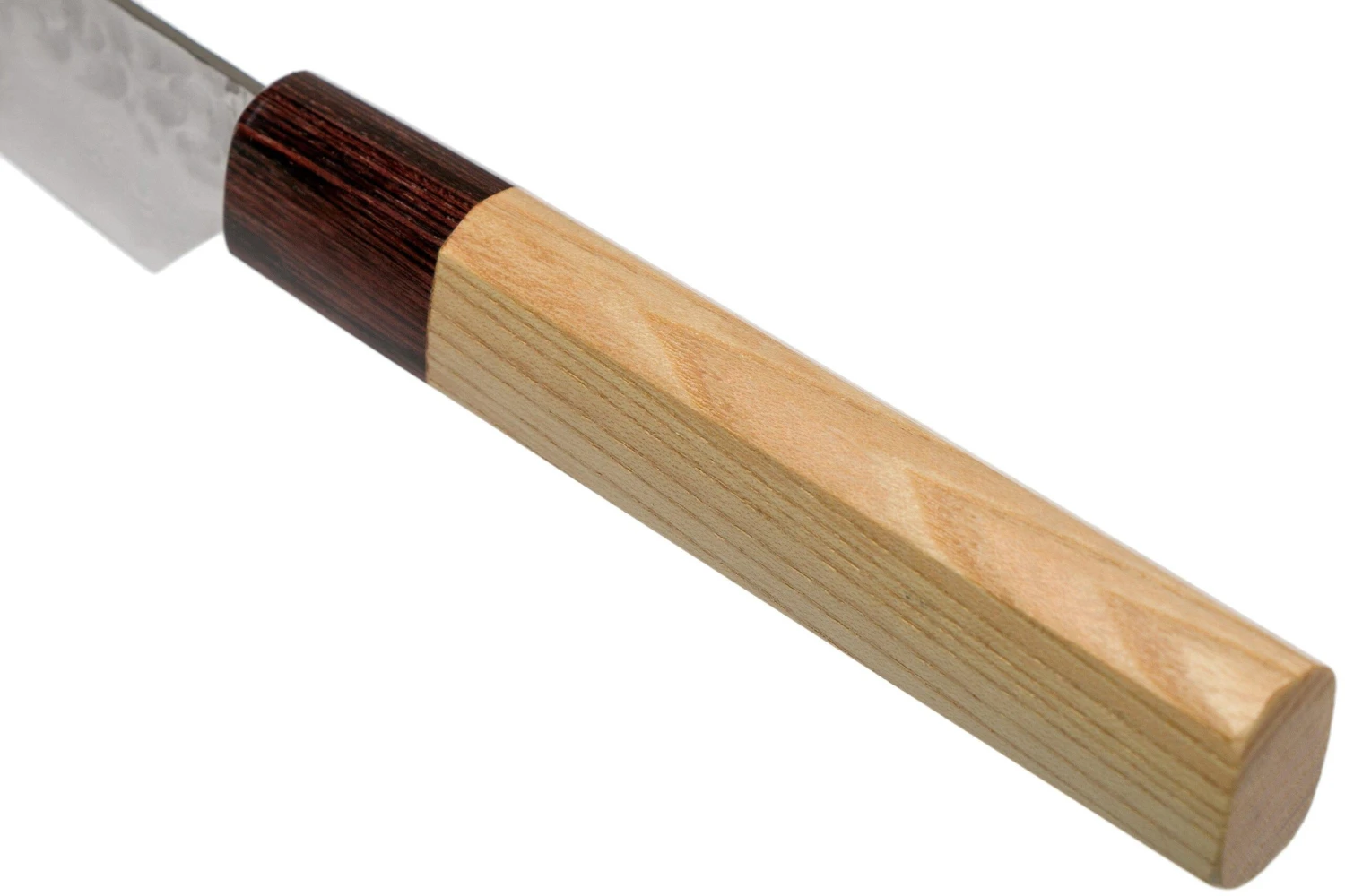 Ce couteau à steak Sakai Takayuki damast Petty de la gamme 33-layer VG-10 Damascus Hammered WA est un couteau de cuisine japonais unique fabriqué à la main. Ce couteau est particulier car c’est une fusion entre un couteau Petty (couteau d’office japonais) et un couteau à steak. Il est donc possible de l’utiliser comme superbe couteau à steak au cours d’un repas ou comme un couteau de cuisine universel pendant la préparation du dîner.