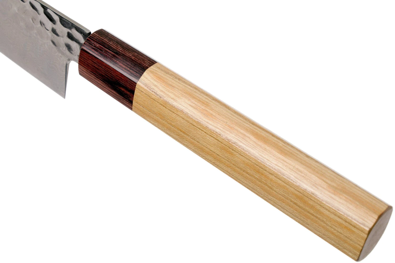 Le couteau de chef 21 cm Sakai Takayuki de la collection 33-Layer VG10 Damascus Hammered WA est conçu pour tout faire dans la cuisine. La lame tranchante comme un rasoir permet de couper facilement la viande, le poisson et les légumes. Il permet aussi de hacher finement des herbes, d’écraser des grains de poivre et de peler des gousses d’ail.