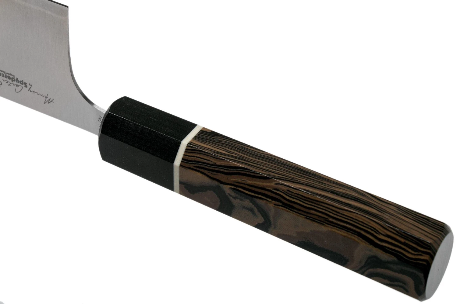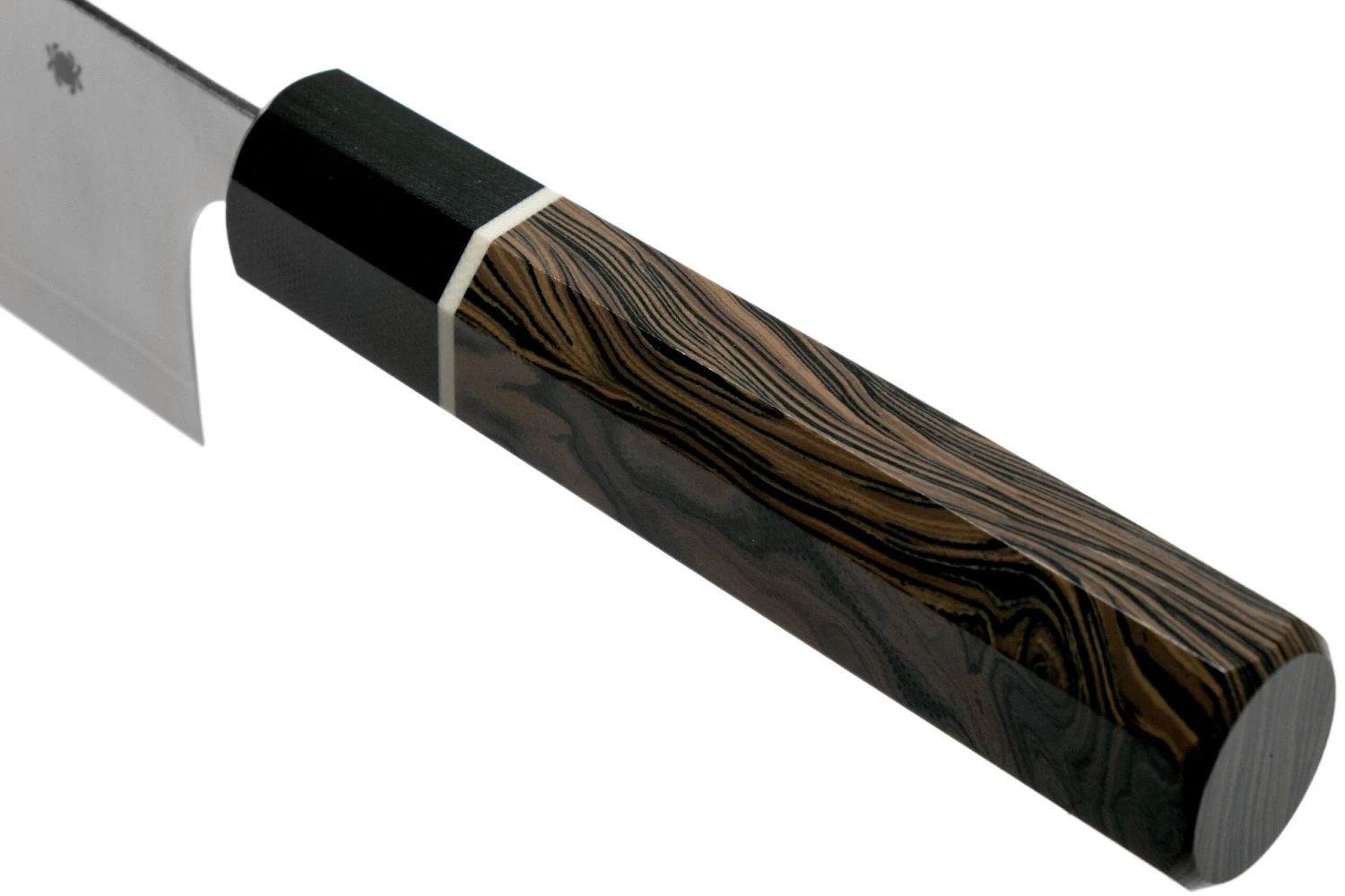 Le Spyderco Nakiri de la gamme Murray Carter Collection est tout simplement superbe. Nakiri signifie en japonais : ‘couteau pour couper le vert’. Sa forme rectangulaire caractéristique le rend idéal pour la coupe précise de toutes sortes de légumes. La pointe du couteau est légèrement arrondie afin de couper les légumes rapidement. Couper les herbes finement ne lui pose aucun problème.